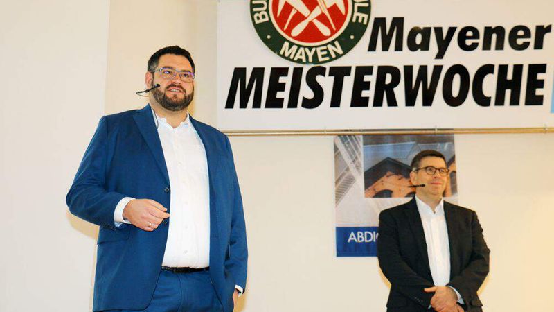 Ob es an den schneereichen Tagen lag, dem guten Tagungsprogramm oder einfach dem obligatorischem Erbsensuppe-Abend am BBZ Mayen: Bereits am ersten Tag der dreitägigen Mayener Meisterwoche war die Aula des Bundesbildungszentrums komplett ausgefüllt. Vielleicht war der Andrang auch dem Überraschungspunkt auf dem Tagungsprogramm geschuldet, den die Veranstalter angekündigt hatten, aber bis zuletzt geheim hielten, doch dazu später mehr. BBW-Vorsitzender Ulrich Sparrer begrüßte zur dreitägigen Fachveranstaltung und stellte das Programm vor. Aktuelles aus der Arbeit des Zentralverbandes stand auf dem Plan von ZVDH-Präsident Dirk Bollwerk und ZVDH-Hauptgeschäftsführer Ulrich Marx. Zur Konjunkturlage hielt Dirk Bollwerk einleitend fest, dass der Bauboom „noch“ anhält, es aber schnell wieder abebben kann. Limitierender Faktor ist aktuell ganz klar die Position Arbeitskraft. Gut ausgebildete Mitarbeiter zu finden, ist schwer, gute Mitarbeiter zu halten umso wichtiger.