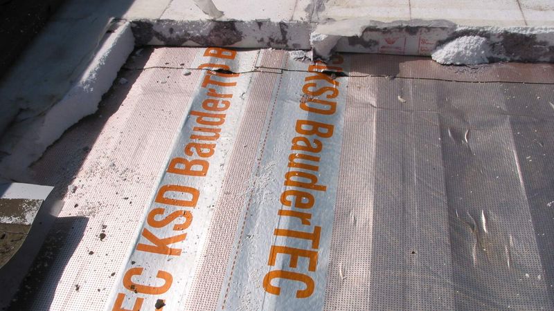 Als Dampf- und Luftsperre war eine Bitumenkaltselbstklebebahn verlegt, die Querstöße jedoch über den Untergurtgräben durchhängend. Die Klebenähte der Dampfsperre waren dort nicht dicht verschweißt, der notwendige Anpressdruck in der Schweißnaht war wohl nicht zustande gekommen. Gegen die Attika waren die Sperrbahnen hochgeführt, jedoch nicht dicht verklebt, weil der notwendige Voranstrich fehlte, und außerdem waren die Sperrbahnen faltig verlegt, sodass offene Luftleckagen entstanden.