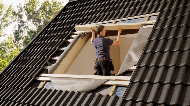 Jetzt folgen wieder die bekannten Schritte: Einbau der übrigen Eindeckrahmenteile sowie der Außenverblechung der Velux Dachfenster inklusive Ziegelzuschnitt und Einhängen der Fensterflügel. Damit sind Arbeiten im Außenbereich abgeschlossen.