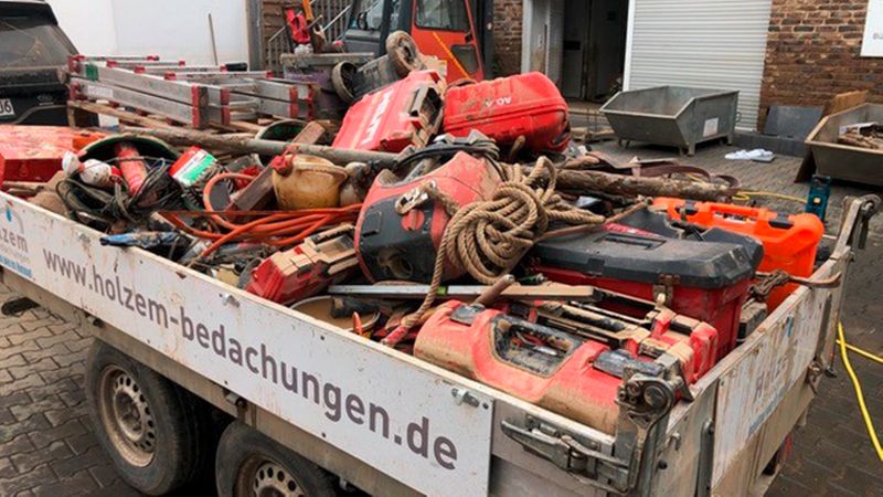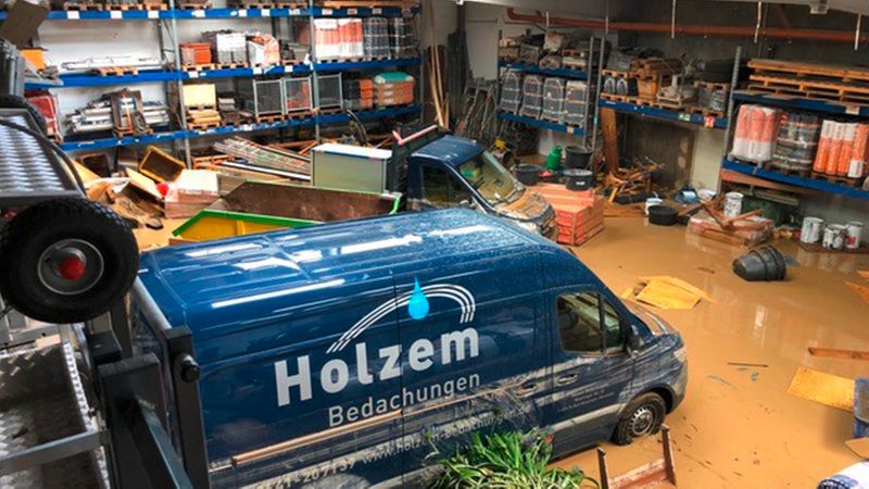 Dachdeckermeister Michael Holzem hat seinen Firmensitz in Bad Neuenahr-Ahrweiler und ist heftig betroffen: "Das hier ist mit Worten gar nicht zu beschreiben. Alles ist verwüstet und kaputt. Unser Büro und unsere Hallen standen komplett zwei Meter hoch unter Wasser. 80 % unserer Maschinen, Werkzeuge und Büros inklusive PCs sind defekt. Ohne fremde Hilfe werden wir das nicht schaffen, da wir hierfür nicht versichert sind. Die Bundeswehr-Soldaten, die Auslandseinsätze geflogen haben, sagen, hier im Ahrtal wäre es viel schlimmer als damals zum Beispiel im Kosovo.