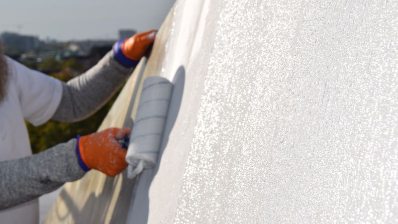 Im Anschluss an die Flächenarbeiten auf dem Dach wurde noch die circa 300 Meter lange Attika als vorgehängte Fassade mit Putzträgerplatten und Flüssigkunststoffabdichtung erneuert. Auf der zementgebundenen Platte kam ein Primer zum Einsatz, ein PMMA-Harz zur Grundierung saugender Untergründe. Als Abdichtung wurde Flüssigkunststoff aufgetragen, sorgfältig überschliffen und mit einem Finish überarbeitet, sodass eine smoothe, glatte Oberfläche mit leichtem Glanz und in der gleichen Farbe wie die Dachfläche entstand.