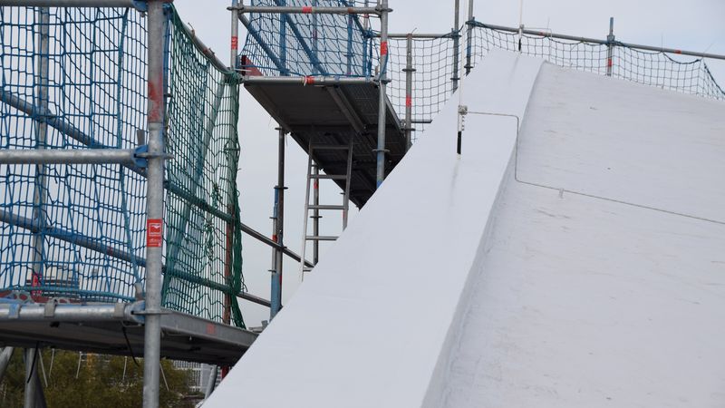 In mehreren Workshops mit den Herstellern und dem Planungsbüro kristallisierte sich eine Lösung heraus. Für die Dämmung wurden Schaumglasplatten gewählt. Sie sind nicht brennbar, hoch druckfest sowie wasser- und dampfdicht. Sie lassen sich kalt verkleben und waren gut zu bearbeiten, sodass die Konturen der Hyperschalung exakt wiedergegeben werden konnten.